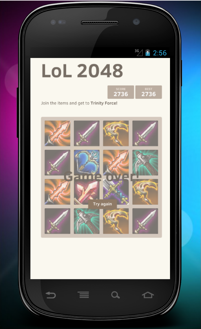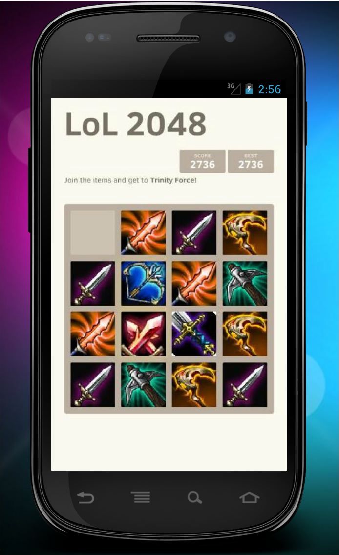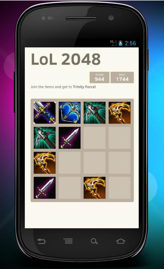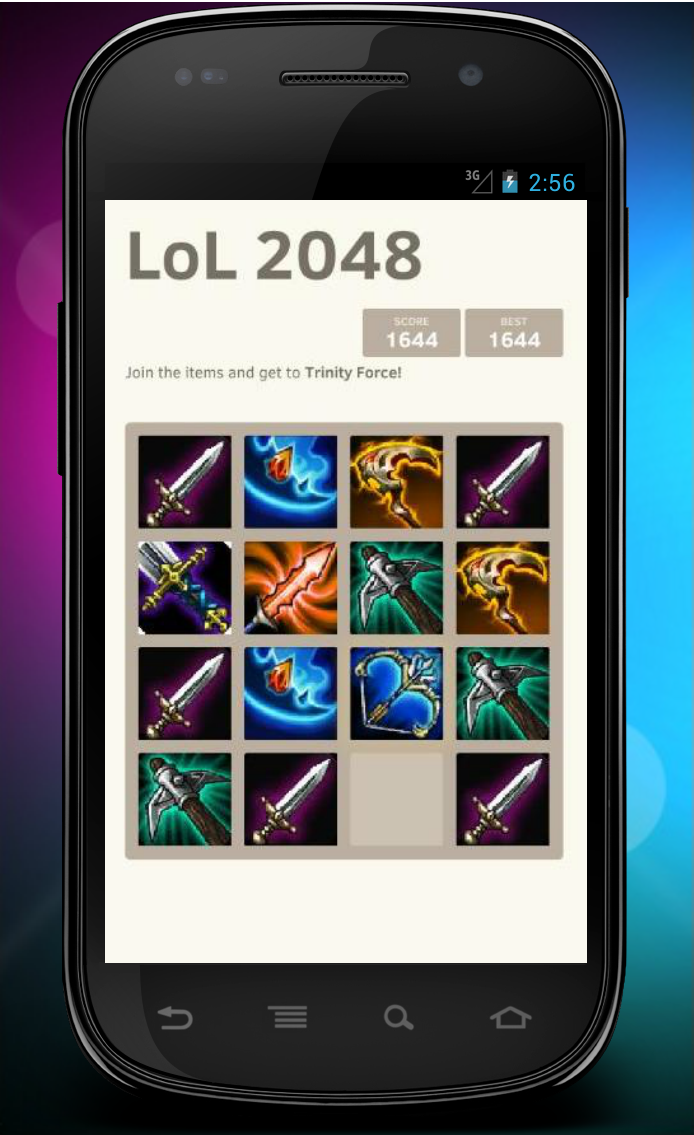 2048 LOL League of Legends games for Android. 2048 LOL League of Legends game and almost perfect number puzzle game for Android. Most addictive Mobile version of 2048 LOL League of Legends game and almost perfect number puzzle game for Android! Explore deep challenge for your mind! Game instructions: +But instead of numbers, you will see images of items in League of Legends Game. + Game is compatible with almost Android 2.3 and up devices + Swypes works for whole screen area + You c