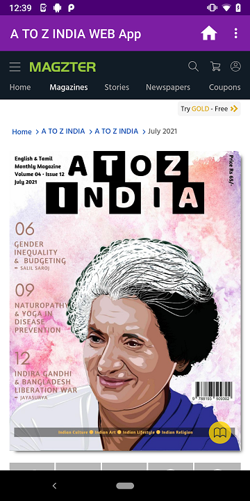 A TO Z INDIA magazine covers the Indian through his art, culture, lifestyle, religion, etc. This magazine gives an insight into the life of Indians from an angle uncovered by others. Turn to find out what it is about and to immerse yourself into an entirely different culture. A TO Z INDIA is a English-Tamil bi-lingual cultural monthly magazine published by Indira Srivatsa. The first issue was published on 01 April 2017. A TO Z INDIA was founded in Chennai on 01 April 2017 as a monthly, by Indira