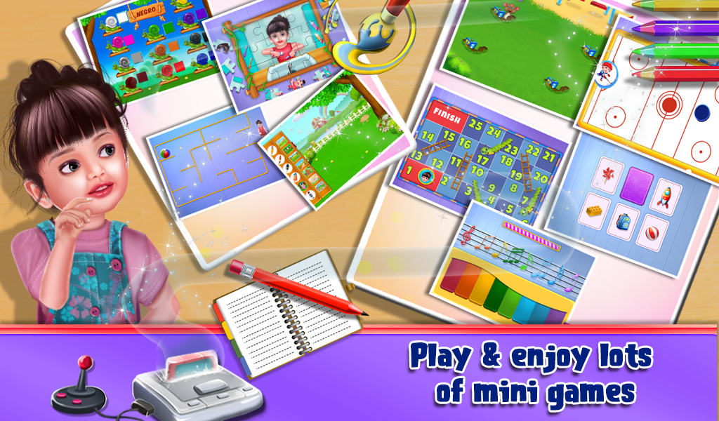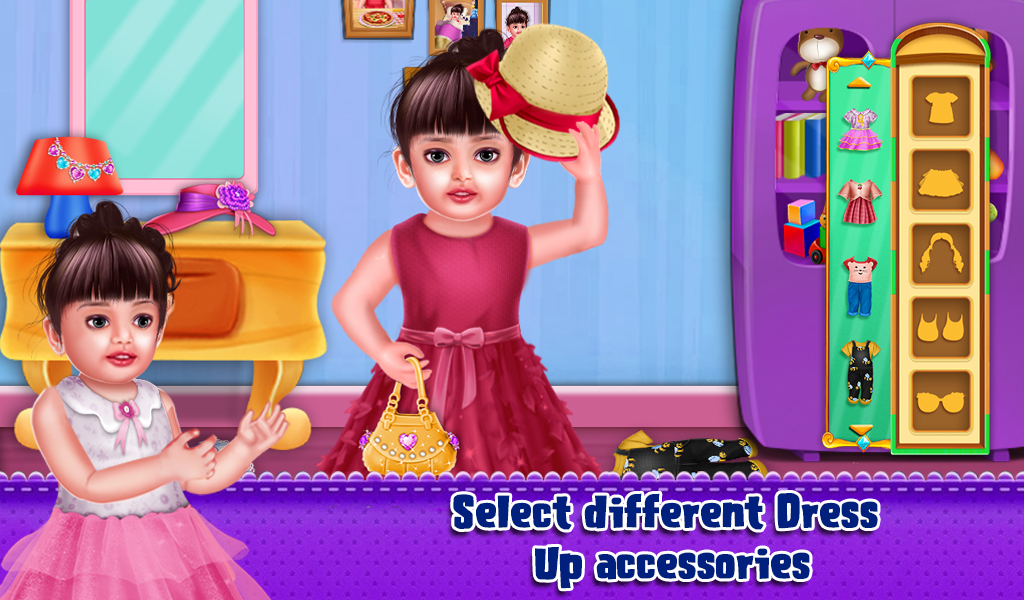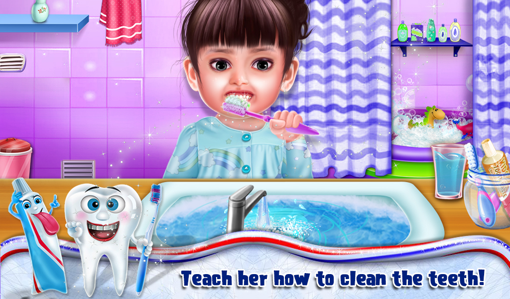 Spend a day with baby Aadhya and help her to perform all the activities she does during the whole day. Start the day by ringing the alarm clock and then help her to perform various early morning activities like brushing teeth, giving a bath, dressing up and much more. While going to school, don't forget to cross the road only when there's a green light. At school help baby Aadhya to learn various colors, alphabet, numbers and names of different animals