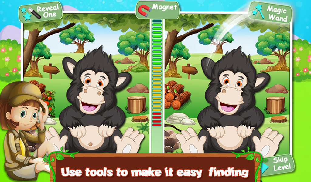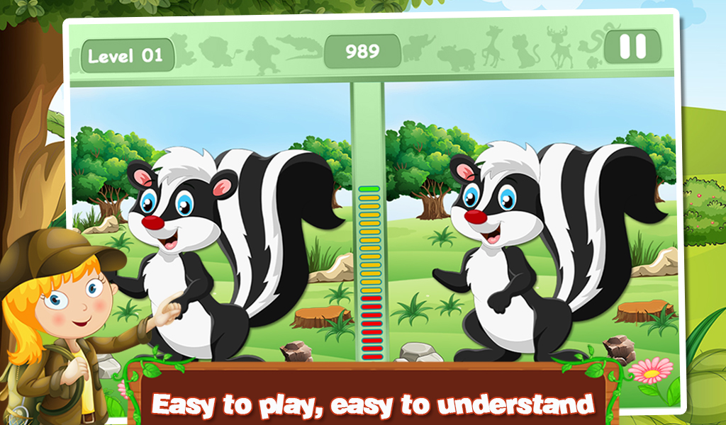 Enjoy this amazing trip to the beautiful forest filled with all kinds of animals and enjoy playing spot the difference game with funny animated effects in all the views. Look carefully into two same images but you have to focus as they are not completely same there are many hidden differences in them that you have to find out. Test your eyes and concentration skills and find out the maximum differences that you can find out before the time gets over and while in difficulty to find any dissimilar