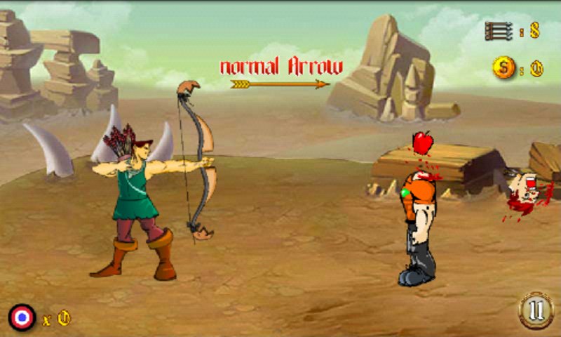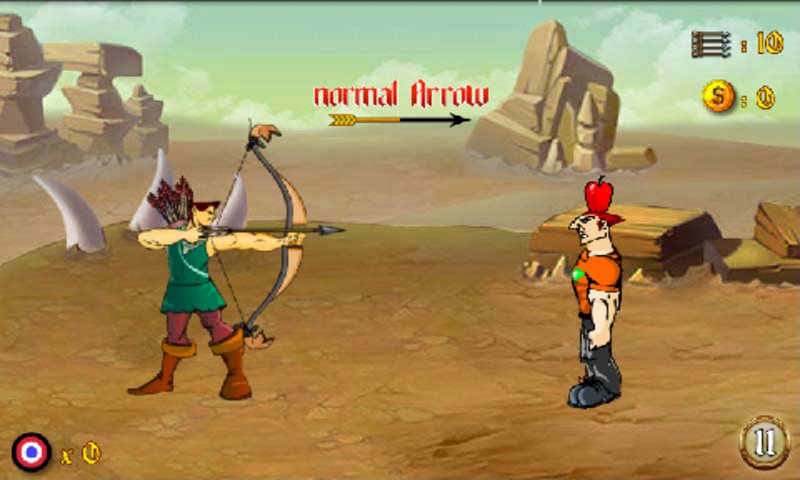 Aim, Set the Target and Hit. Gear up for the action-packed game, take aim at the designated target and get your perfect hit. This is a bow and arrow game. The game is simple and calls for shooting the apples off man's head using a bow and arrow. But beware of missing it or you might end up killing the man! Your mission is try to hit the targets with arrows and advance to the next levels. Shooting with arrow is a challenging archery game, practicing your archery skills. Please be careful or y