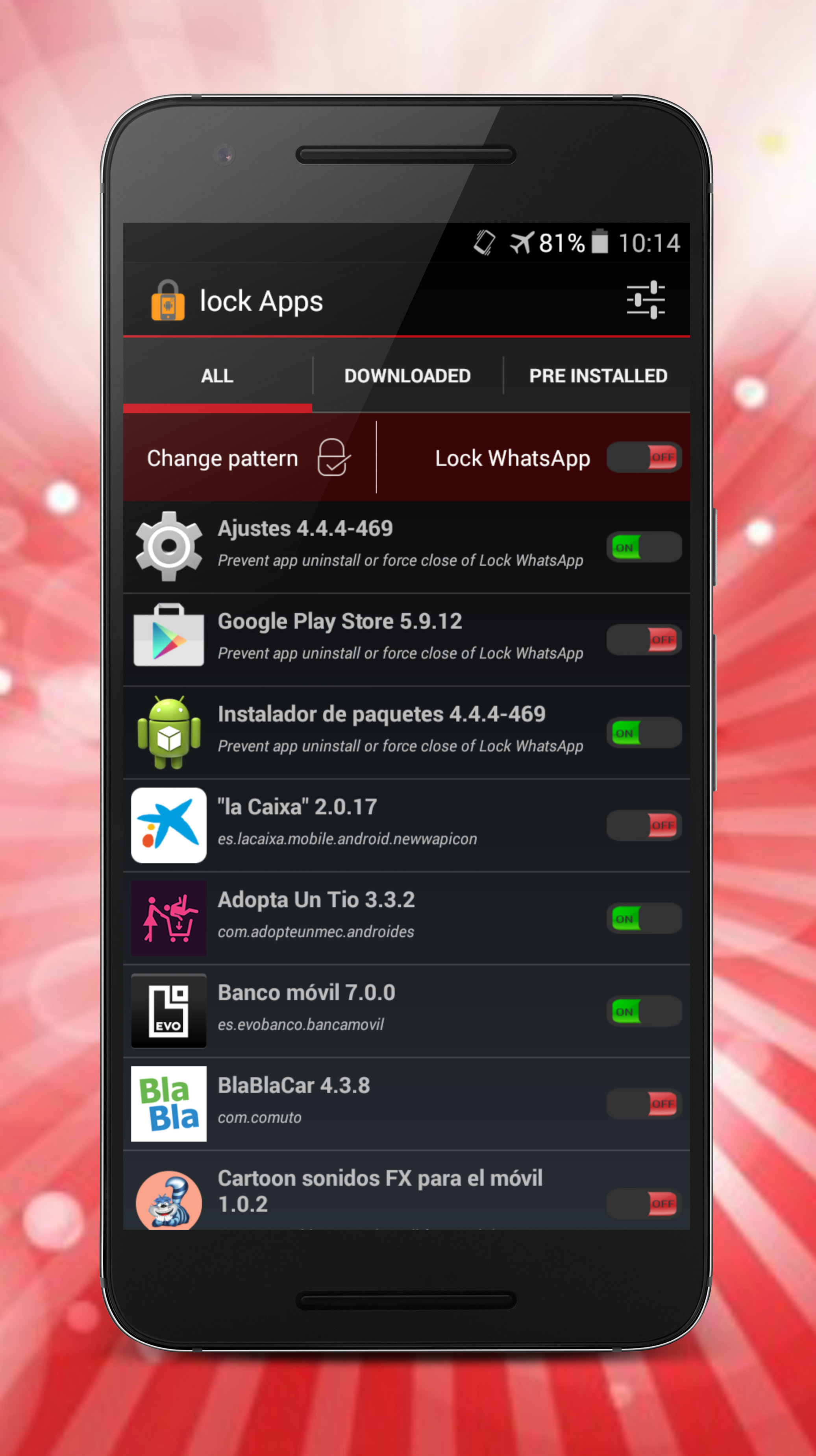 AppLock lock applications allow you to block any function of your phone or security program using pattern or pin. In a simple way you can choose where you want to use the lock and just who put this pattern can then unlock. Blocks calls, sms, gmail, Facebook, protects your privacy. Why use blocking: - For example with your children, if you do not want desconfiguren the phone, change things, make purchases or simply enter your Internet or viewing photos. - With your friends. You leave a phone a