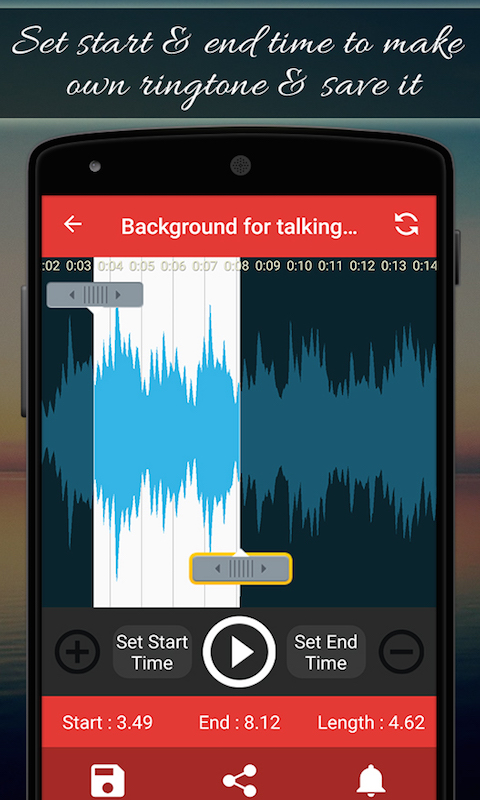 Auto Ringtone Maker is one of the best app for editing music in an easy way. In this app, you can cut the best part of your audio song and save it as your ringtone, alarm, notification, or music. The cut results are stored in your sd card. You can also record a live audio and trim the best parts from it for free. Set starting and ending points for an audio clip using an optional touch interface and then play the selected portion of the audio, including auto scrolling of the waveform. Save the cl