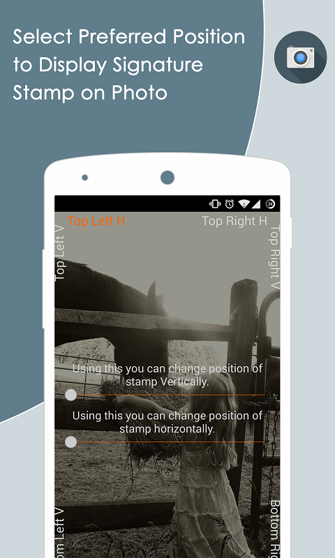 Many a times after seeing a particular image you wonder that it would have been perfect if that image would have had your name or Signature Displayed on it. But now with the help of "Auto Signature Stamp on Photo" Application, you can insert any Text on the Image you Click as part of your Signature very easily. Just Snap images as usual as you do and the Application will Automatically insert your Preferred Text Signature on it where ever you want on the Image.