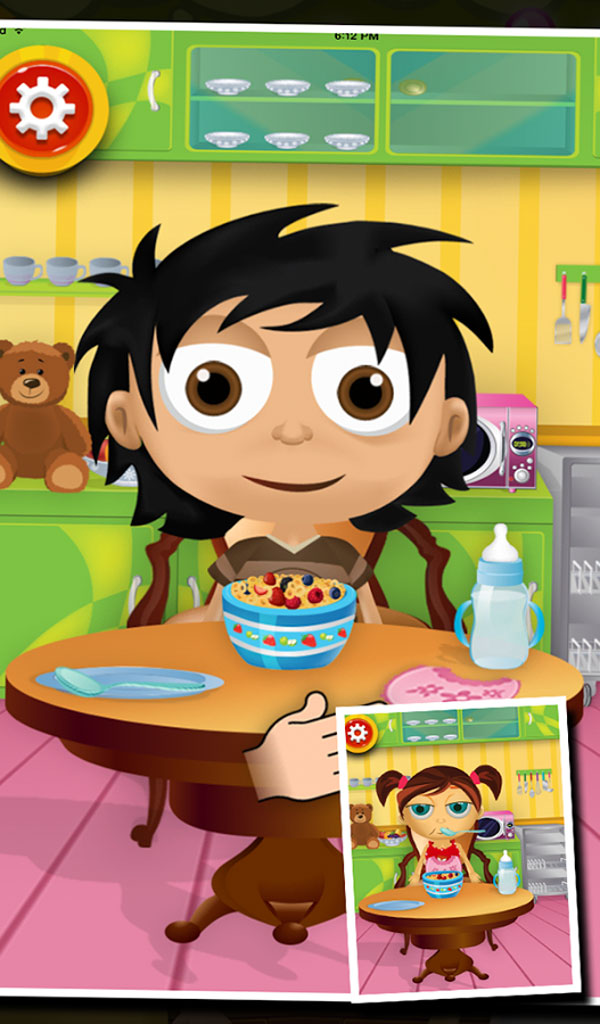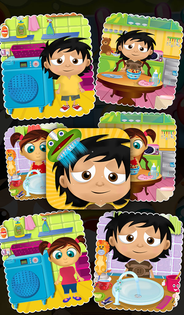 Baby Day Care play at home and she watched the TV find friends all play at the backyard and she called her friends to home to play with them.As you know Baby Day Care is too young to make party arrangements.You can help her. There are three amazing view like Washing Machine view, Eating View and Brush View in the game.