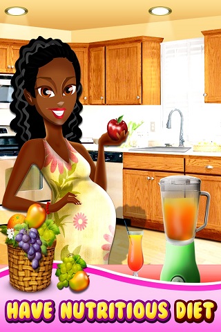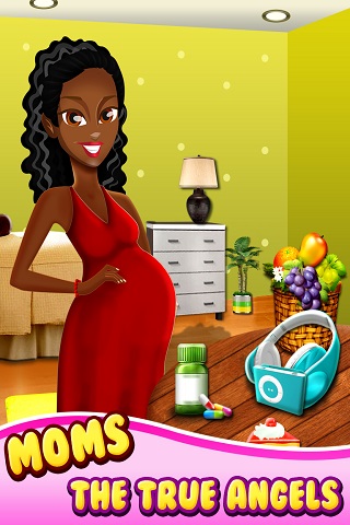 Momma will give birth soon, and this time, she is is overjoyed with excitement and fun. The birth of new life is very exciting! Mommy starts her day by taking her vitamin then she eats a slice of delicious cake and put her earphones on her tummy so her baby can hear nursery rhymes. Help mommy using your finger and rub her tummy to make her laugh Now it time to make a make a fruit drink and eat her apple. Help mommy add fruit to the blender with your finger and pour juice into glass. diapers