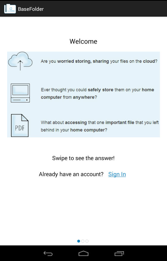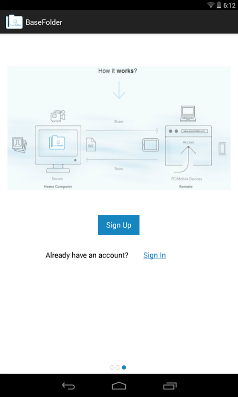 basefolder is a free service that let's you access your home system from anywhere. After you install basefolder on your computer, any file you save to your basefolder will be available in your Android device. You can also upload photos or videos to your home system from your mobile device.