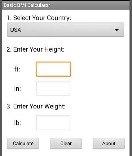 • Calculates BMI using lb/ft or m/kg • Displays BMI Prime (using US units) • Includes International Variations • Free • No ads