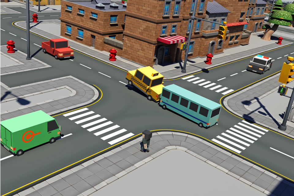 There are different types of vehicles like bus, police car, luxurious car, etc.. In this game you have to click on car and cross the road. you must help cars to ride through crosswalk. If your car touch any other vehicles or any characters of game then your game will be over. There are diff diff sound available in this game.