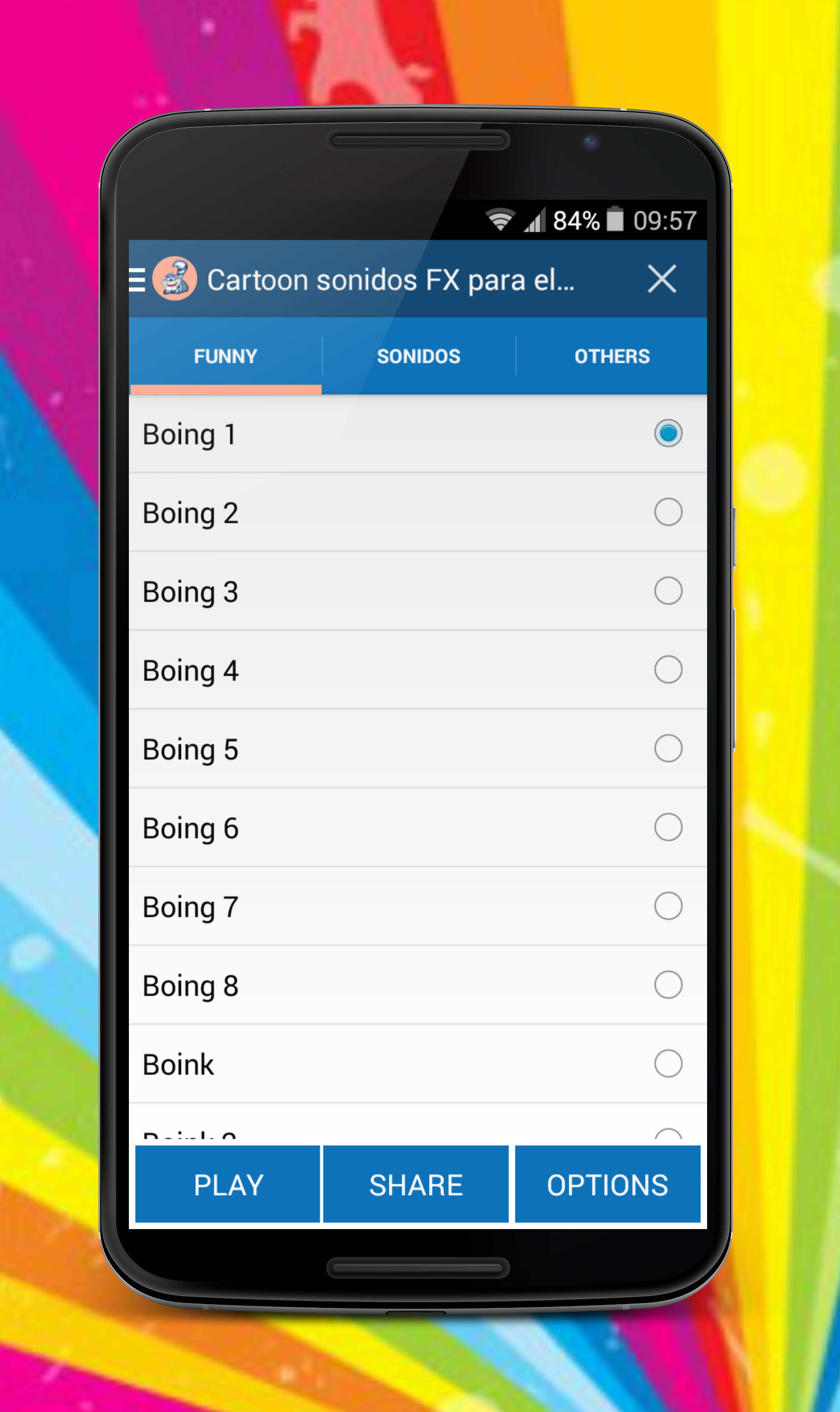 Cartoon sounds effects and funny ringtones to share, with this application you can have in your mobile phone the best tones fx cartoon as shades of hits, explosions, animated laughter, speakers, your favorite cartoon falls, surely remember your series With these effects audio you will be able to: - Choose your favorite tone and sound fx share by email, WhatsApp, Facebook ... - Use the ringtones of these animated sounds as ringtones for your mobile - Assign these cartoon effects to a contact i