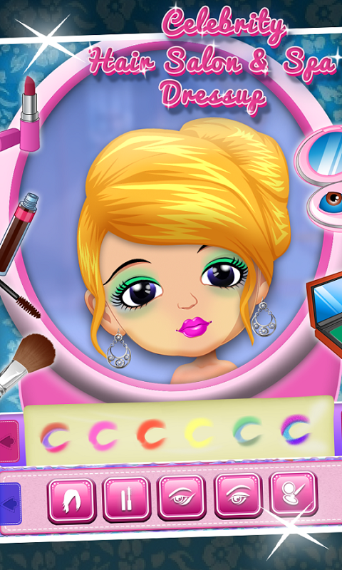 It's time to turn on your celeb quotient. Design and create your perfect celebrity!!! Have fun with the endless designing and clothing options. => Be prettier about your hair. => Learn how to prepare different hairstyles. => Know how to use a pair of scissors, brush, hair irons, or hair dyes of different colors. => Play funny games with hair dressers. This makeover process starts with hair cutting and ends with dress up session. So first wash the hair with shampoo and cut it accordin
