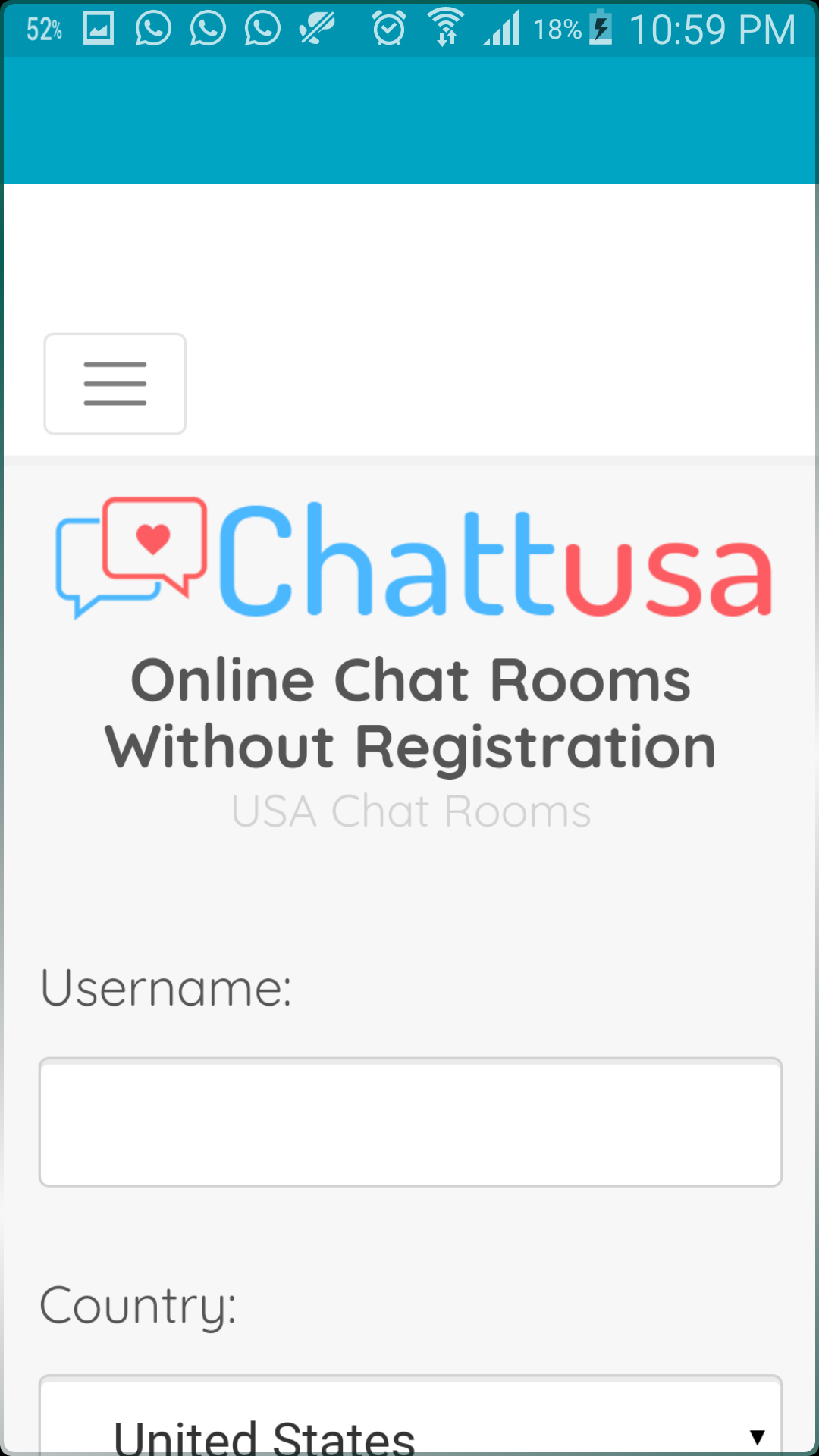 CHATTUSA is a free online chat room for people all over the world. It helps you meet new people, single women and men and make new friends. We don't log or keep users' data and messages, making Chattusa totally Anonymous and secure. If you want to protect your username and reserve it for personal use only, then you can sign up with your email and keep your nickname safe
