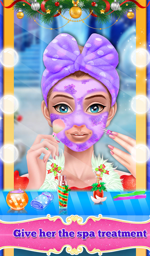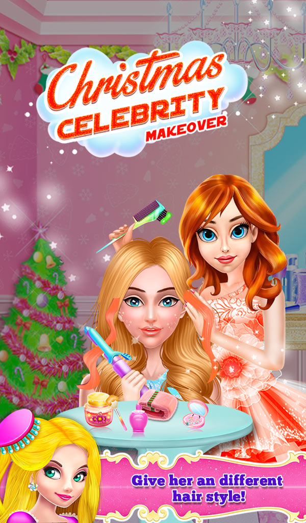 Every girl wants Celebrity look for her Christmas day. Can you help this Christmas girl? She needs a good makeover to go for the party. Being a successful stylist you'll do lots of makeover activities in this game. Start with soothing spa treatments to make sure her hair and skin is clean and clear. After the spa treatment, help her to select best make up for her like hair style, eye color, eye shadow, eyeliner, mascara, lipstick, blush, earrings, necklaces, bracelets and much more. You can also