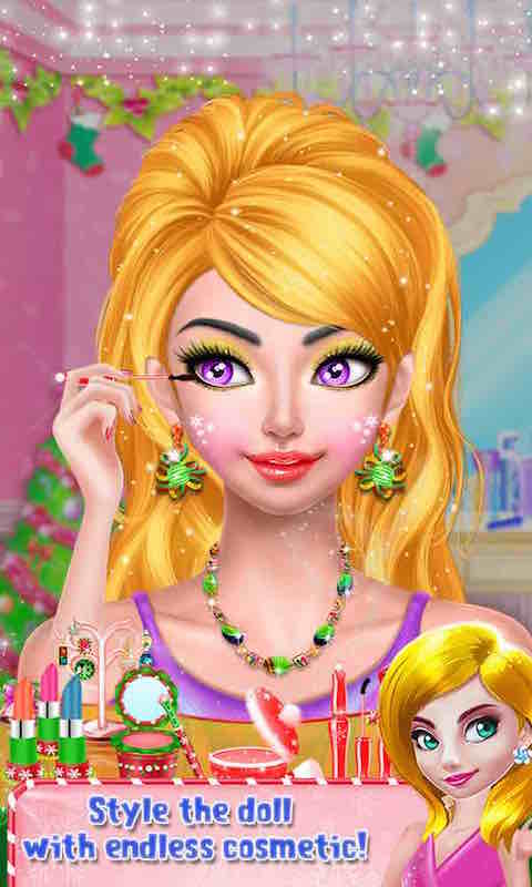 Hello girls, it's time for a winter celebration. Our beautiful Christmas doll wants to get ready for New Year celebrations to look pretty. So let's help her at your own makeover salon. Start with a spa treatment and give her best look. Then visit the hair salon and make an amazing hair style for her.