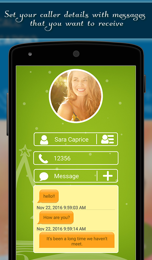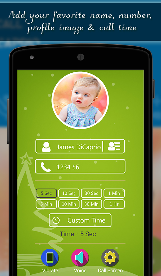 Hello Friends, Amaze your kids by requesting a free personalized phone call from Santa. The Christmas Fake Caller app allows you to make a fake incoming call or receive fake calls from a virtual Santa or fake friend to avoid awkward situations like Meetings and Party. Just open the app and enter any name and number that you like then set the timer after which you will be receiving a fake call. Select photo from the gallery or capture using the camera it will appear as your fake caller photo when