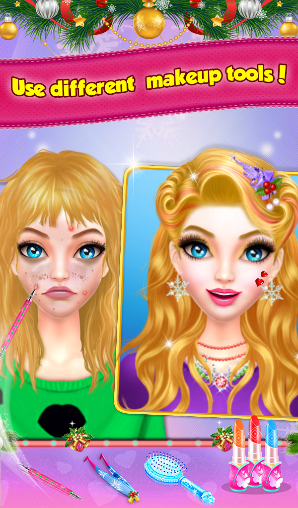 The Christmas party is incomplete without a makeup. Become a fashion queen this Christmas girl to make her look attractive and pretty for the Party. First, you must go the hair salon and prepare a perfect hair style for her. Then visit the spa section to remove her pimples and apply several layers of cream and to make an herbal steam treatment.