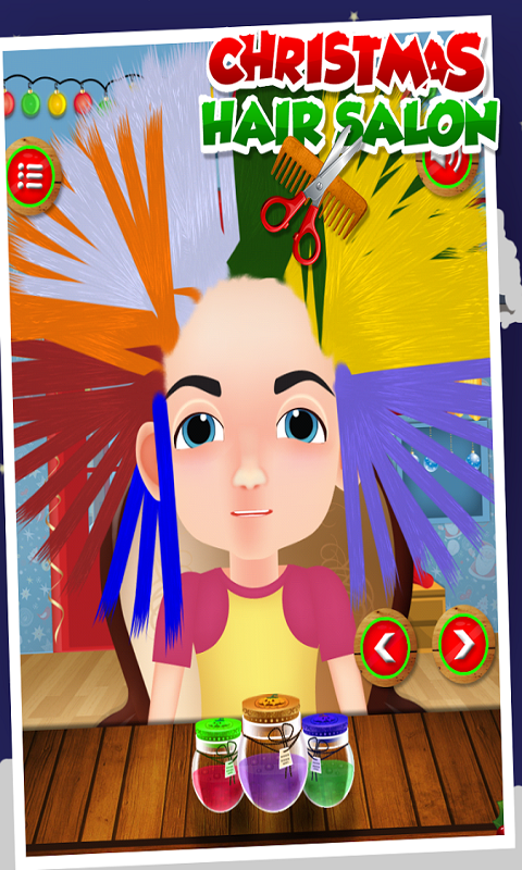 Christmas kids hair salon is hybrid version of gameimax. This christmas brings for you an attractive hair salon game. By playing this game you can try lot more hair styles on dummy characters. You can cut your own style, gives funky look etc. Even get more stylish look by making your hairs curls and strait. Not only that you can even colour your hairs with lots of different shades.