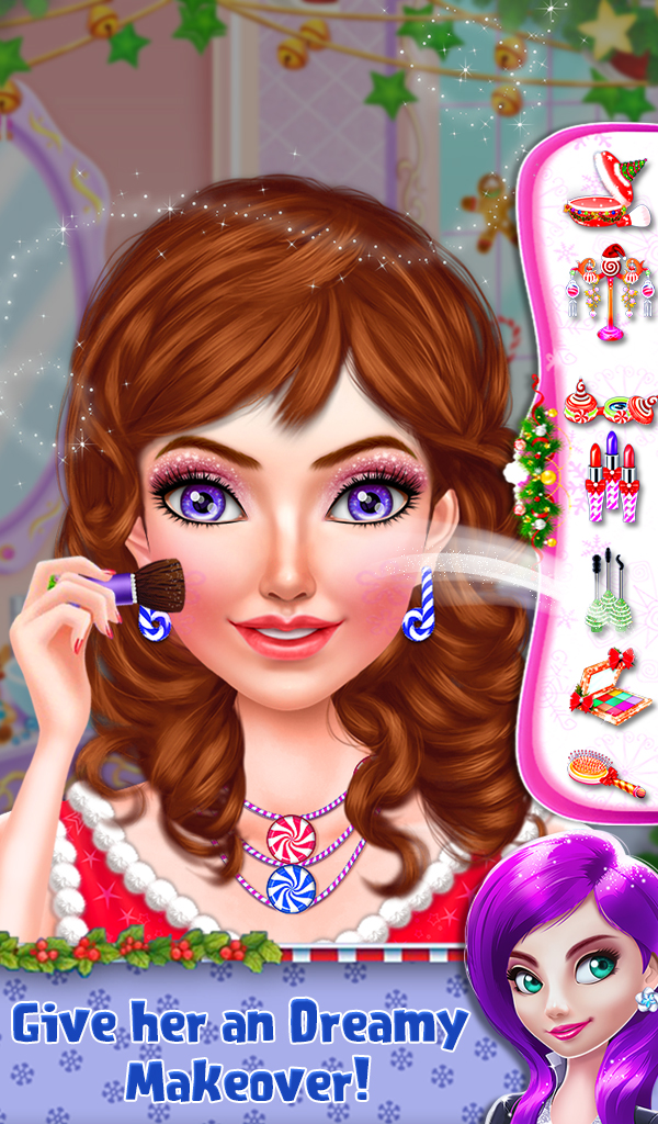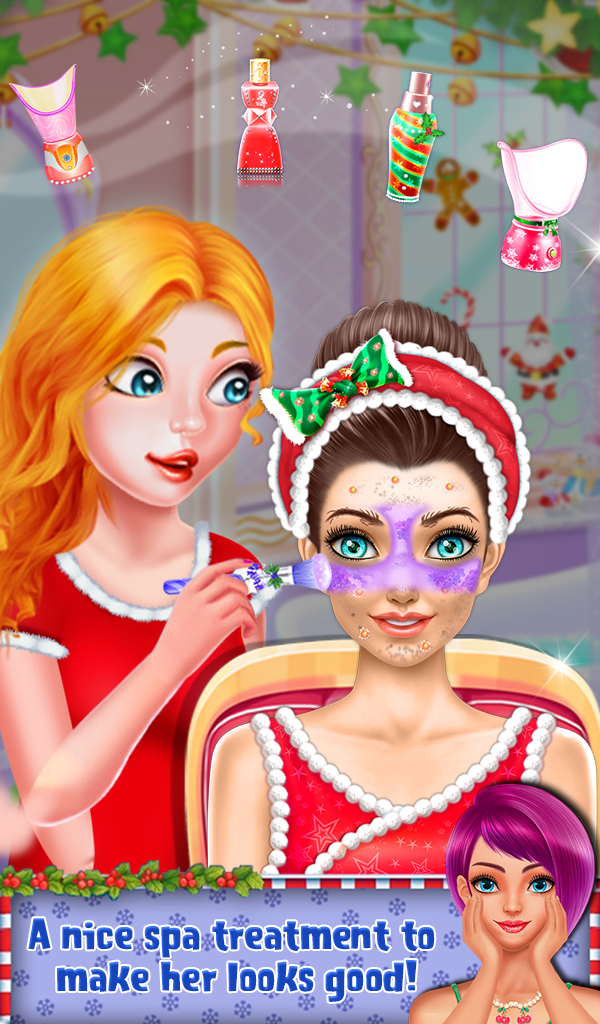 The Christmas holidays are important in a year and every girl loves going to fashion salon spa. Come to makeover and dress up the Christmas girls, and give them a beautiful look for a Christmas party. In this game for girls, you'll meet, who needs a pretty look. What do you think? Will you help her to look good? If yes then start with spa treatments and remove her pimples, dark circle and blackheads then go to the hair salon and prepare a perfect hair style for her.