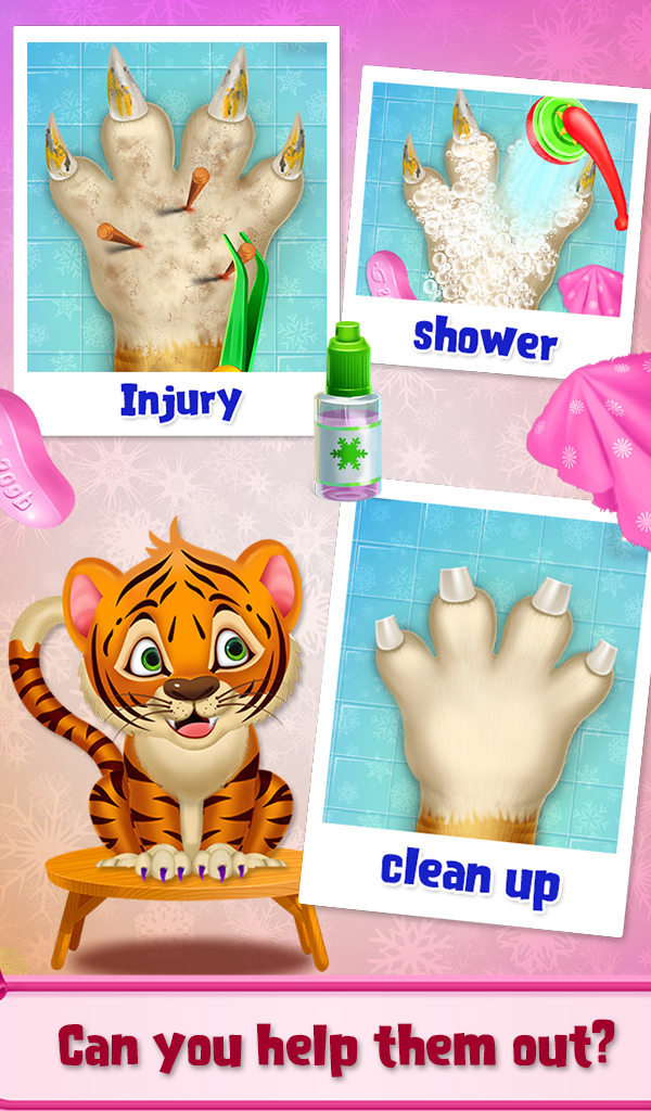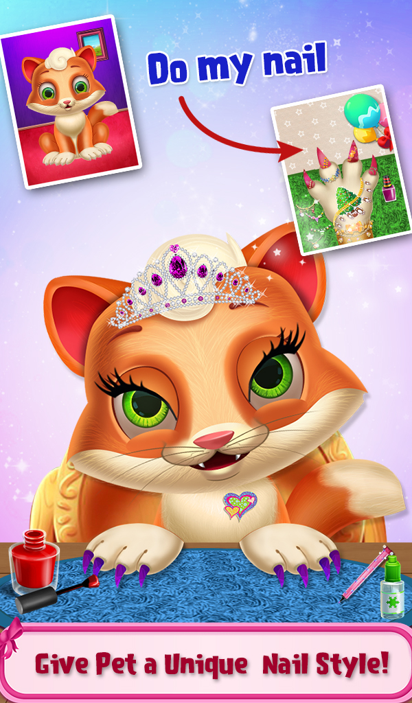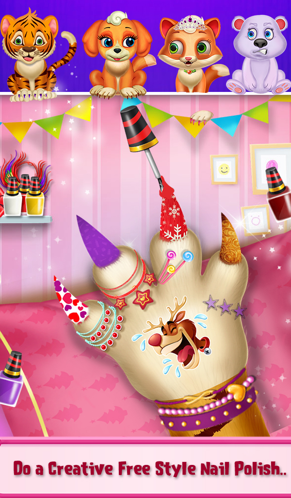 Just a few months remaining for the Christmas. Explore the limits of your imagination in this new nail salon game where you can create beautiful nails for your favorite pet in just a few steps. First, choose your favorite character and wash your pet's hand by using soap. Then clean their nail and cut it properly.