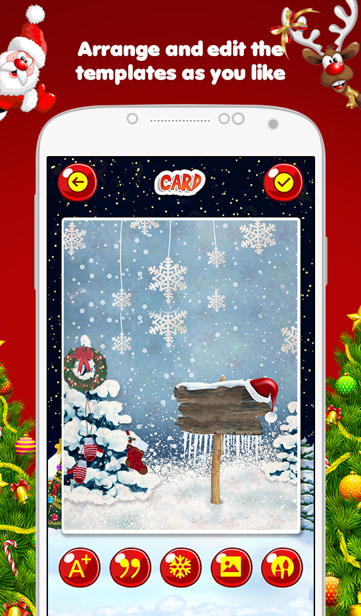 This Christmas party is going to be pretty cool and lot of fun. Get a huge crowd of friends in your Christmas party by inviting them all in a totally new way. Create totally different Christmas special fun cards from lot of different options of card design and Christmas stickers.