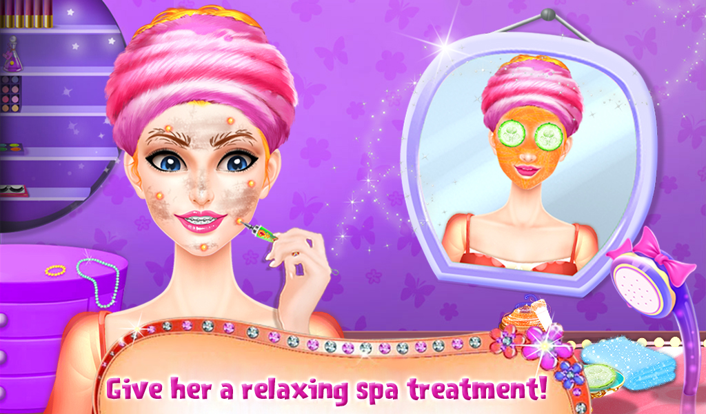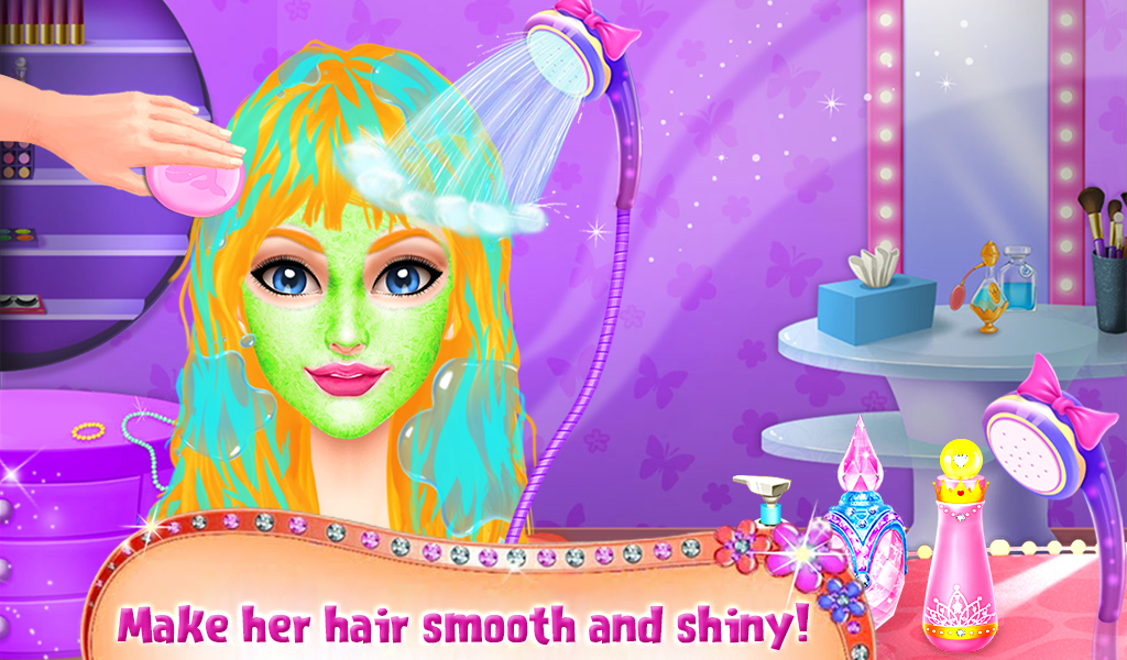 Hello girls. Are you ready to play a new concept of party makeover game? Help this girl with a makeover and give her perfect look for color storm party. Start the makeover with hair wash then give her spa treatment for smooth skin. Don't forget to do makeup, use the perfect lip gloss, eye liner, eye shadow and much more thing for a gorgeous look. And after that complete all the makeover activities choose the best dress up like a beautiful top, dresses, earrings, neckless and much more. Play and