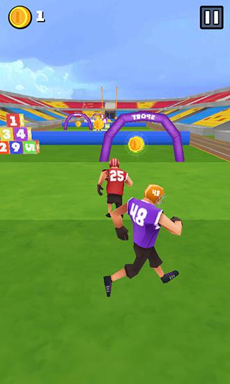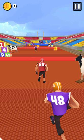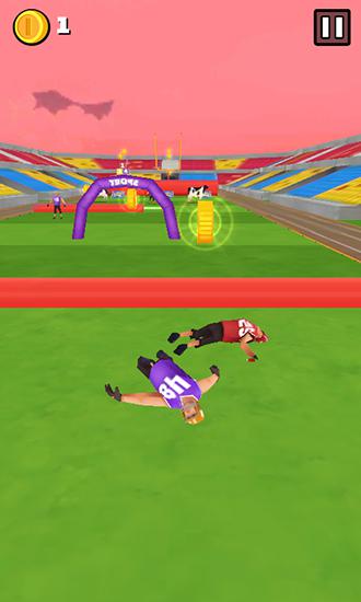 Crazy fun - help American football player bring the ball to the end of the field and score a goal. Outwit your opponents and overcome a variety of obstacles on the way. Guide the main character of this game for Android ahead at insane speed. You need to run through the unusual football field. On hero's way there are barriers and obstacles like swinging pendulums, circular saws, and more. Help the football player jumping over traps or bypass them. Dodge defenders of the opposing team and various