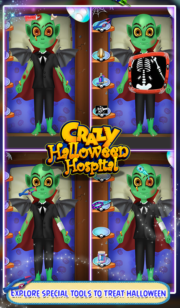 Let's help those little Halloween. They got injured while playing. Crazy Halloween Hospital by GameiMax is a really interesting and fun game, where you are a real doctor.