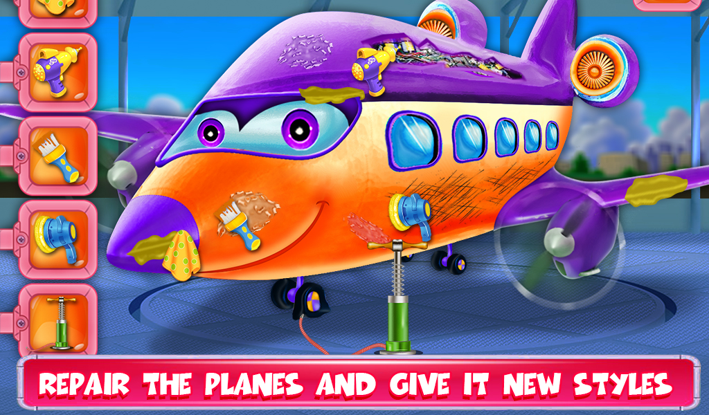 Small kids always dream of becoming a pilot and fly a plane and for those kids GameImax has an amazing game for kids where they can create some amazing airplanes by themselves and even fly them through the air. Do various different fun activities like repairing the broken parts, removing the parts that are not working and changing it, coloring it and fitting the perfect body parts on it. Complete this airplane daycare game for kids and become a successful pilot. Features: 1) Lot of differe