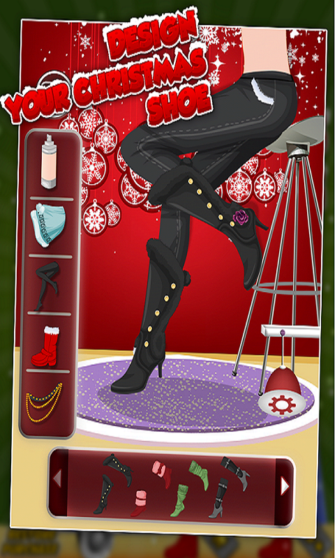 Christmas Shoes maker This Christmas comes with a lots of new games for kids. Shoes maker is a very cute and descent game for girls. You can decorate your own shoes with varieties of Christmas clip arts and dress yourself like female Santa. Playarea contains different clothes,shoes, cliparts and different skin tones. So just try it.