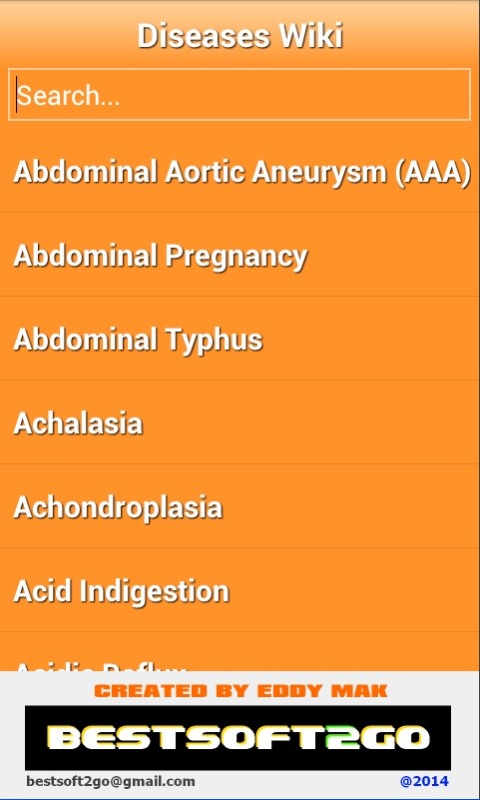 Diseases Wiki is a completely OFFLINE and FREE medical tool containing common diseases and medical conditions with detailed information. This tool helps people look up common diseases/conditions or self diagnose. It contains quite a lot of valuable medical details that can help you understand the disease/condition and the ways it might be cured/improved. Medical App Features: - FREE pocket reference - the most recent edition (2015 edition) - 7x24 offline without internet - contains the c