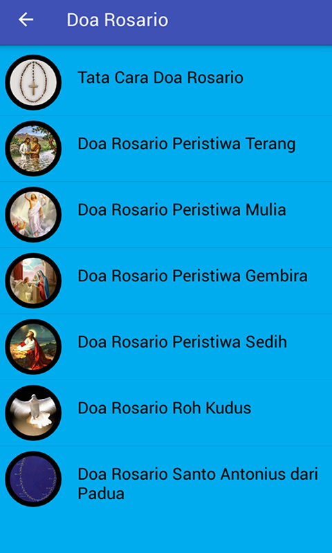 Aplikasi Doa Katolik ini merupakan kumpulan doa-doa Katolik seperti doa dasar, doa pribadi, doa novena, doa rosario untuk memudahkan umat katolik berdoa di manapun dan kapanpun