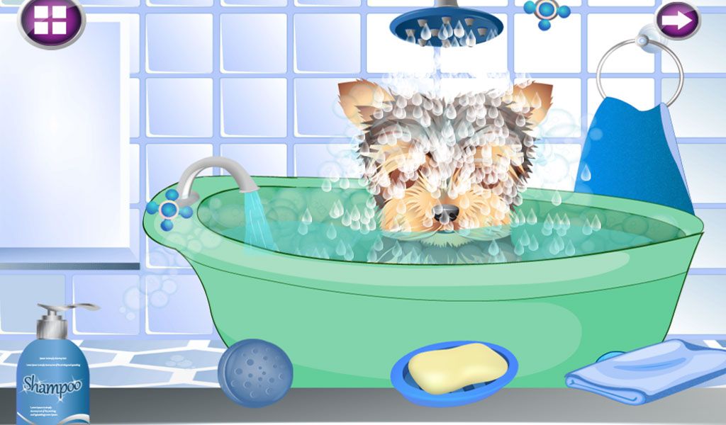 Dog Beauty salon game for pet dog lovers. In this game first complete bath of the dog with soap and shower clean the dog.