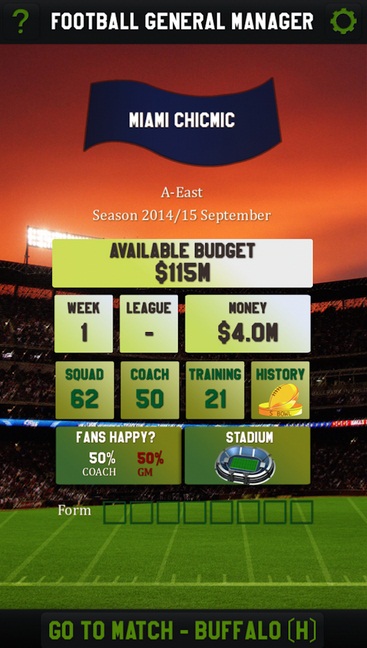 Build your own Football Dynasty! Can you draft your team from bottom of the division into a force to be reckoned with and reach the very top? Take on the role of the GM and decide who should be the coach to take your squad to victory! This is your draft day! Can you be the champion of the draft picks? Decide who to sign, which pick to take and who to trade! It's all down to you. Develop your stadium and increase your fan base whilst maintaining a strict budget, can you go all the way? Good luc
