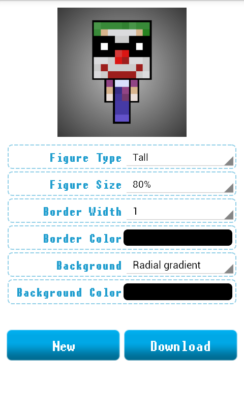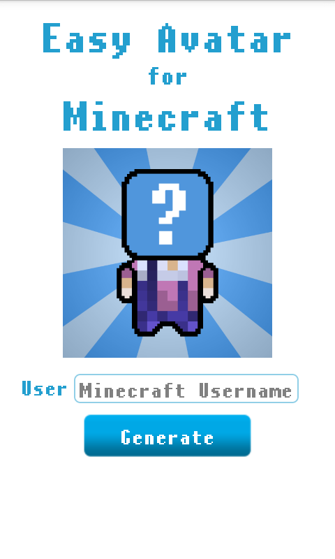 Make your own Minecraft skin avatar from Minecraft username. This app easily turns any Minecraft skin into a nice unique picture. You can download it in 5 different sizes, save it into your gallery and use it as your profile image. Features: ? Easy to use ? Search skin by Minecraft username ? A lot of customization options (avatar type, size, border, background, colors) ? Download 5 different sizes: 64x64, 128x128, 256x256, 512x512, 1024x1024 ? Automatically adds the fi