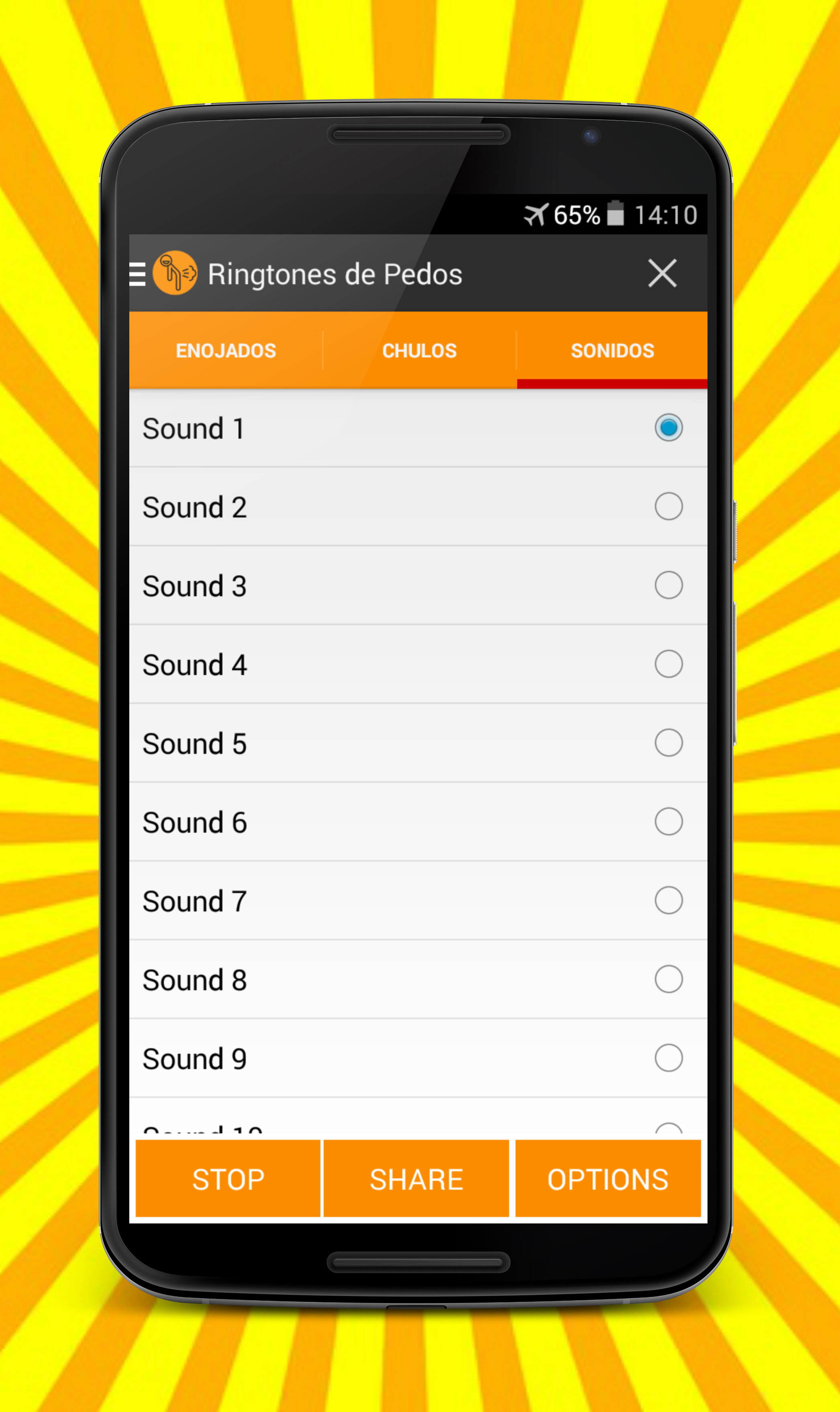 Realistic farts, all kinds of fart sounds to joke with friends, you can choose from a variety of flatulence and farts and share or use as ringtones for your mobile. You die of laughter with this variety of fart, you'll friendly banter as it is a good simulator real farts, silent, loud, classical ... With this free application you can also: - Use fart sounds as ringtones for your mobile - Linking a fart to a contact in particular to hear when he calls - Use any sound as ringtones notificati