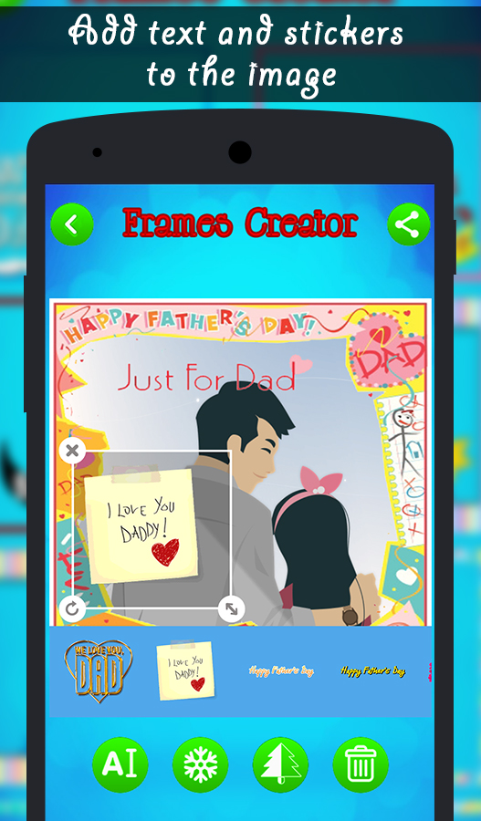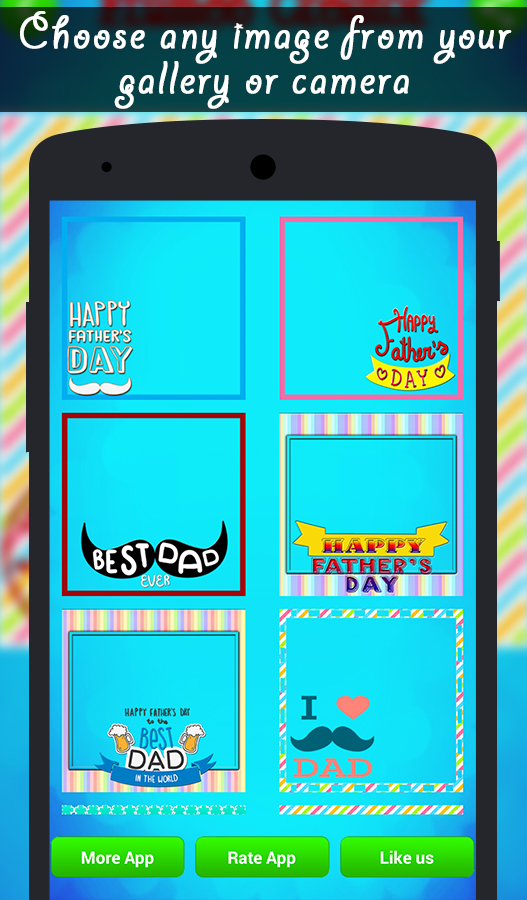 This amazing Father’s Day Frames Creator app will decorate your photo and Dad’s photo with wonderful Father’s Day themed frames. Make a simple photo attractive by adjust in selected frame, add text, eye-catching stickers. Now your photo looks cool save it to gallery. Features: 1) Select your favorite frame 2) Browse photo from gallery or capture 3) Add text , add stickers 4) Save picture to gallery.