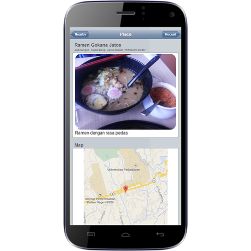 This application could find the nearest place around us with the help of GPS. This application is also equipped with alert system that can notify the latest information on the activities performed by users, so that any user of this application will not miss the latest information. Alert system used is very useful for trading activities. Two functional (GPS and Alert System) which combined the advantages of this application.