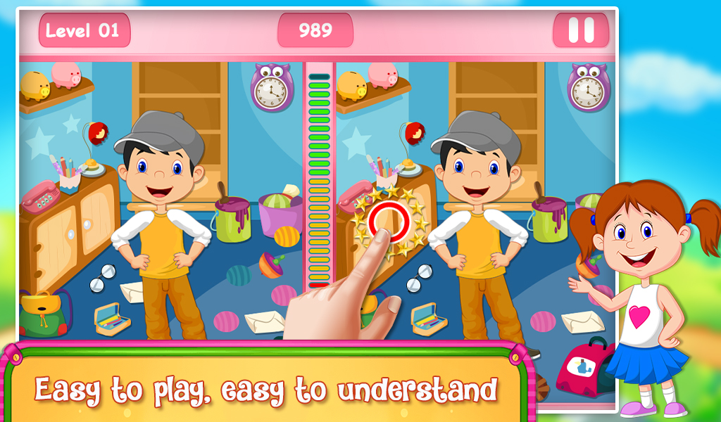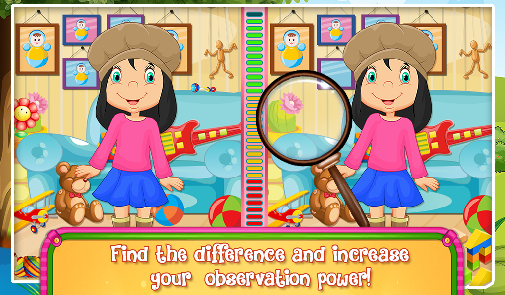 There are 2 images and they look totally alike but they are actually not totally same as there are plenty of hidden differences in it. Find out all the differences in the 2 images in all of the levels and test your skill of searching hidden differences in them. Complete all the levels before the time gets over and you have to be quick as there are lots of different levels in it. Use amazing different powerups in each of the levels to help you complete the level faster whenever in trouble. Share
