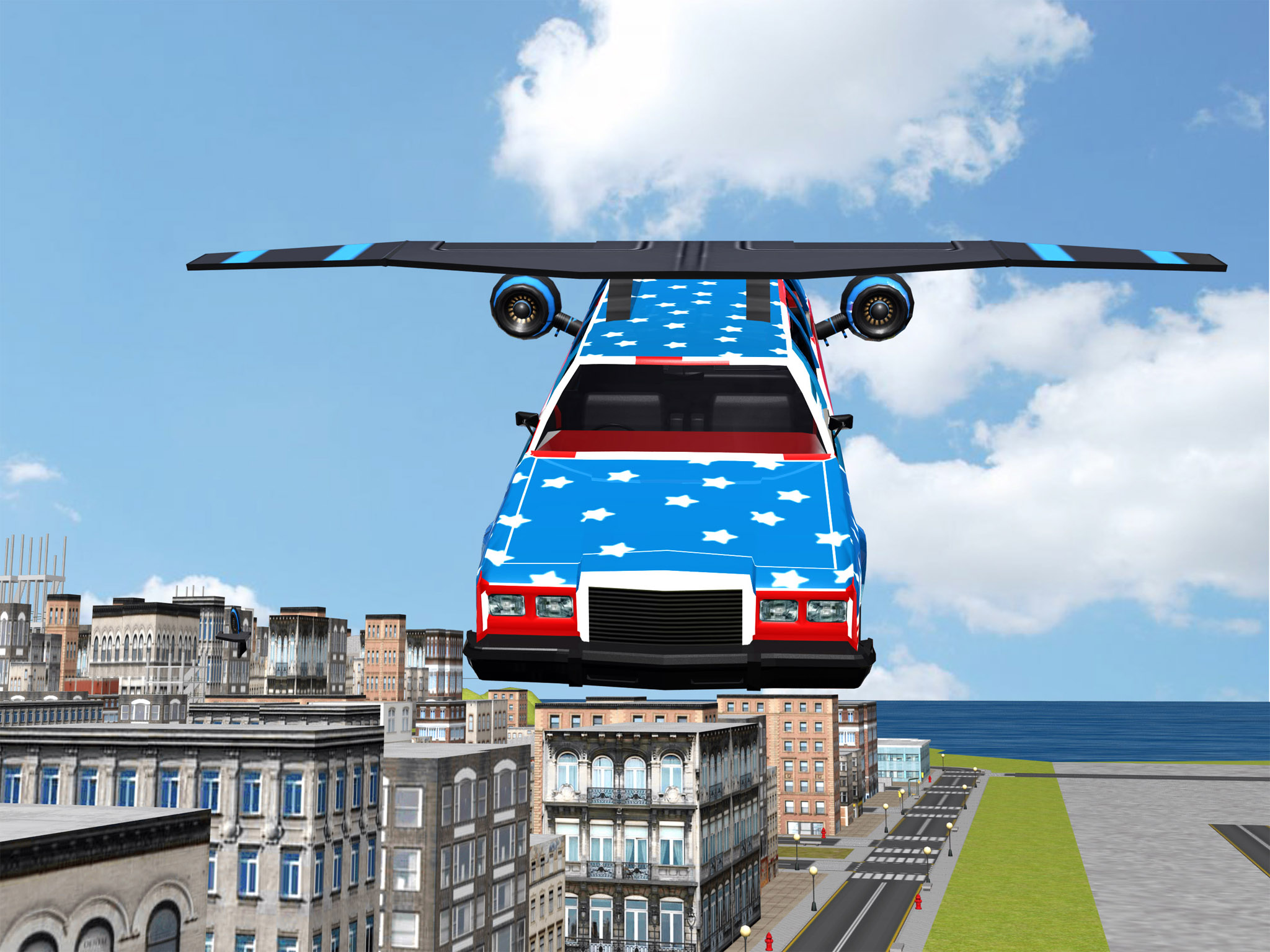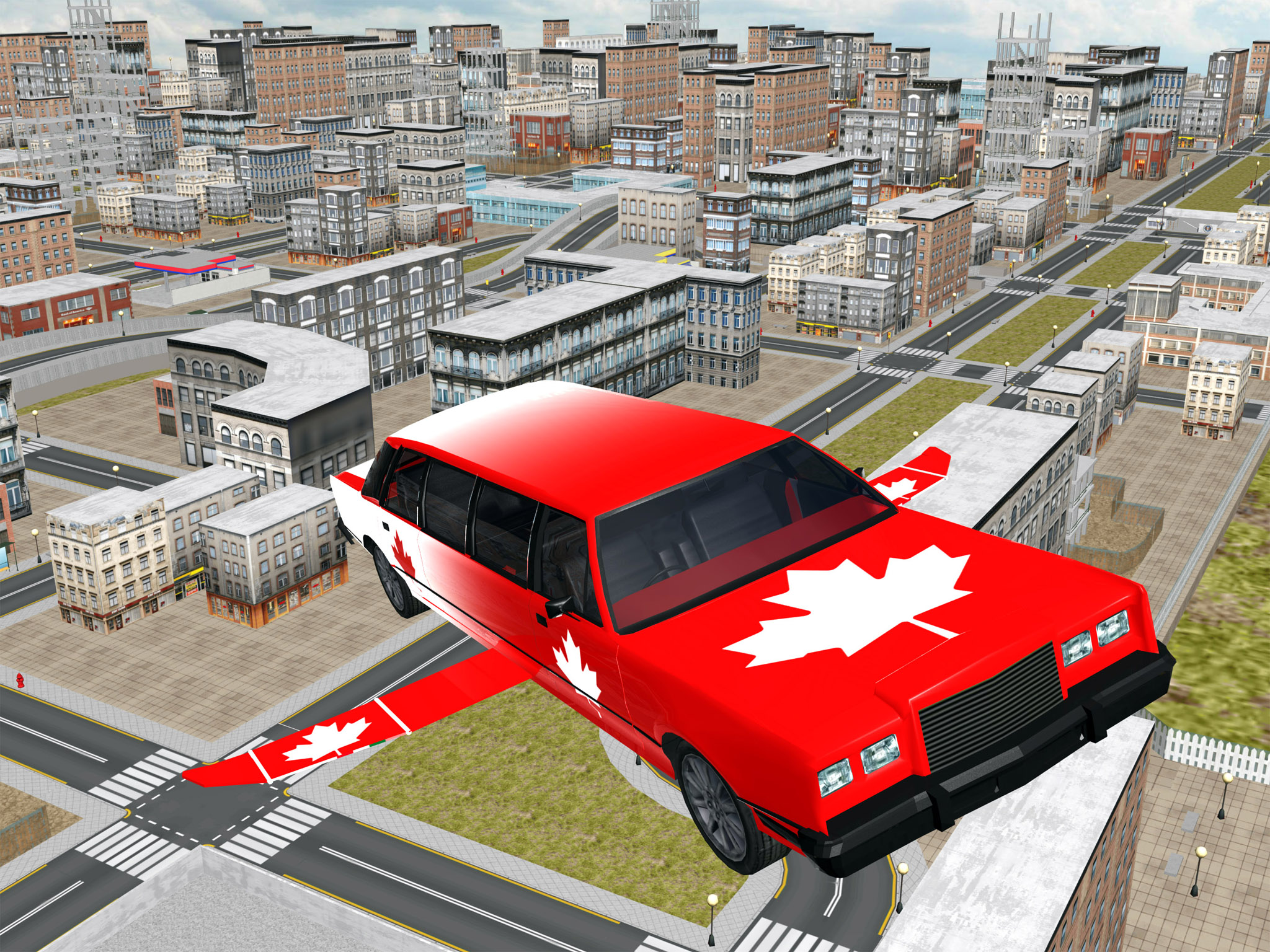 Racing your car in air!!! Oh MY GOD!The car fly in the sky! Ever wanted to drive Limo cars? Maybe fly an airplane? This game is perfect for you! Now you can drive your super sports car do stunts and drifts in dirty off-road or fly your car like an airplane. Well, it's your chance to experience the best blend of flying car games and car stunt games. This amazing flying car simulator will take you towards an action packed ride in the latest flying car racing games. Fly your car around the ci