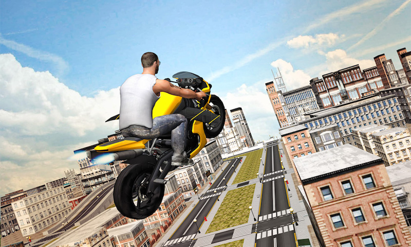 Flying Moto Racer 3d Racing Moto is a fast paced racing game. You never dare drive so fast in the real world! Have fun dodging cars and trucks while you speed up to the limit. Race against the AI in an outstanding Racing Face-Off and try to earn the respect of your fellow bikers. Speed Motercycle Racing 3D embodies the most amazing feature in any bike game: Nitro Boost. Arm your nitro by accelerating and overtaking other cars and then use it to reach max speed. While driving, please appreci