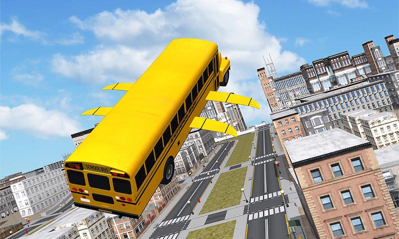 Flying School Bus simulator Are you ready for an entertaining adventure? Hey there Flying School Bus simulator! We offer you the chance to be the best schoolbus of the city! Welcome to biggest open world Flying car Simulator. In this crazy game you will be flying with an bus. this might seem strange, but this game is really a lot of fun and challenge. Everything including physics are created to be as realistic as a real flying bus as possible. Key Features: => Stunning HD Graphics => Be