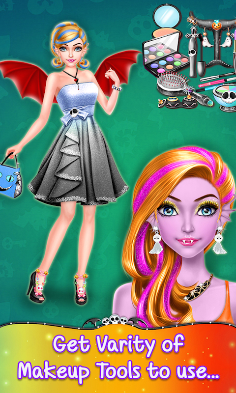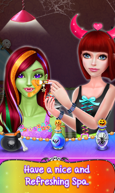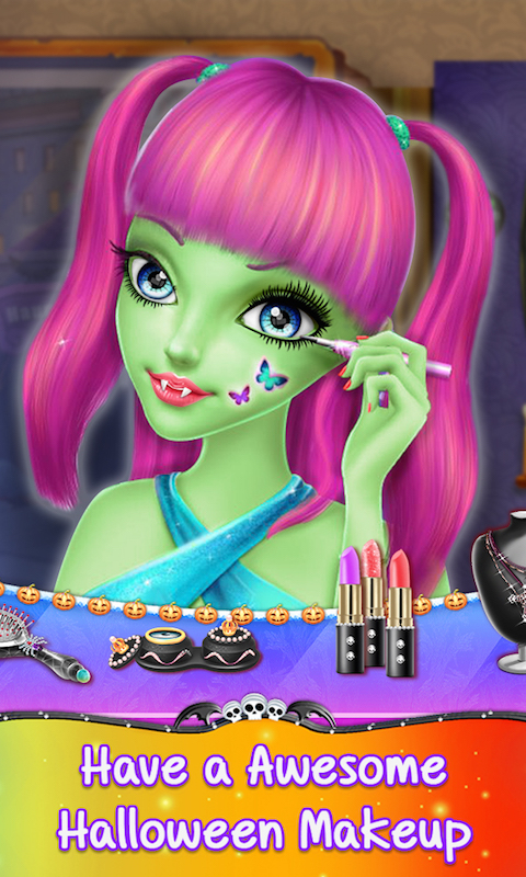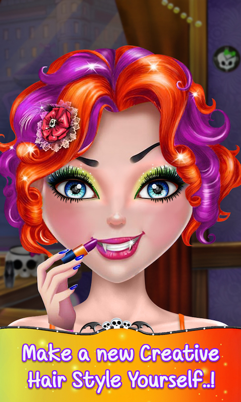 If you love Halloween games and do you like to preform makeover activities! Try out this free girl salon game, which will give you tons of dress up fun. In this game you get the chance to makeover a model for a scary Halloween party. Start with spa treatments and apply some moisturizer on her skin. Then go to the hair salon and prepare a perfect hairstyle for Halloween girl. Visit a makeup and use mascaras, eye color, eye lenses, eye shadow, blushes and lipsticks to help your little girl to get