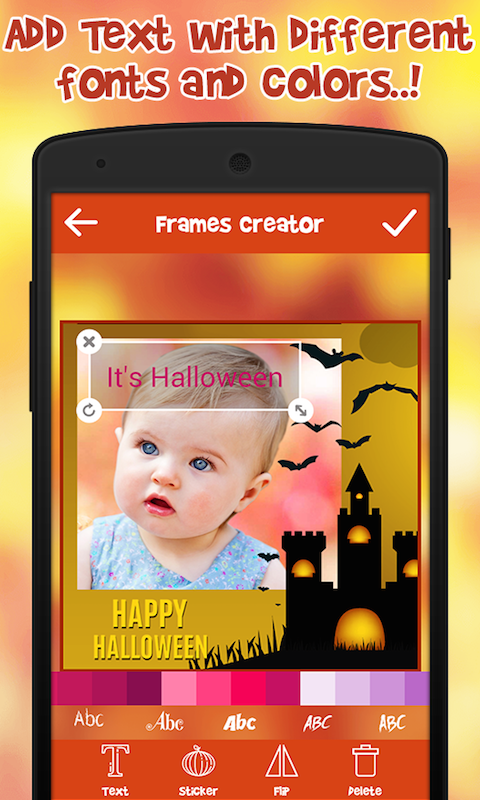 The Halloween party is now coming, and this 2016 will be more special if you make your awesome pictures using this amazing Halloween frames Creator app. With this frame creator app you can create amazing compositions for your Halloween party. First select any frame which you like the most from the different options, then write your own text on the frame. After that you have to choose stickers like a Pumpkins, Bats, Vampires, Witches, Black Cats, Spiral, Ghost, Owl and much more. You can also sel