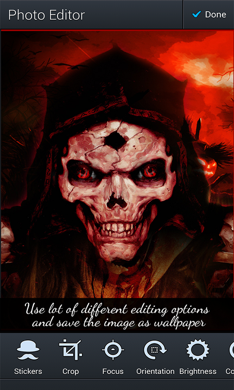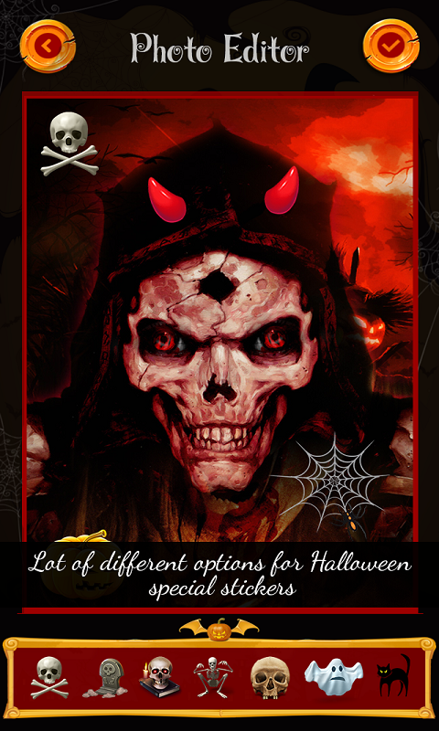 The latest Photo editor this year is here with whole lot of new and exciting features to edit your images with Special Halloween effects. Click an image or choose any image from your gallery and start editing it with number of different options like funny Halloween stickers, adding beautiful frames etc. Lot of different editing options available to give it a totally new look. Save the image to your gallery and share with everyone.