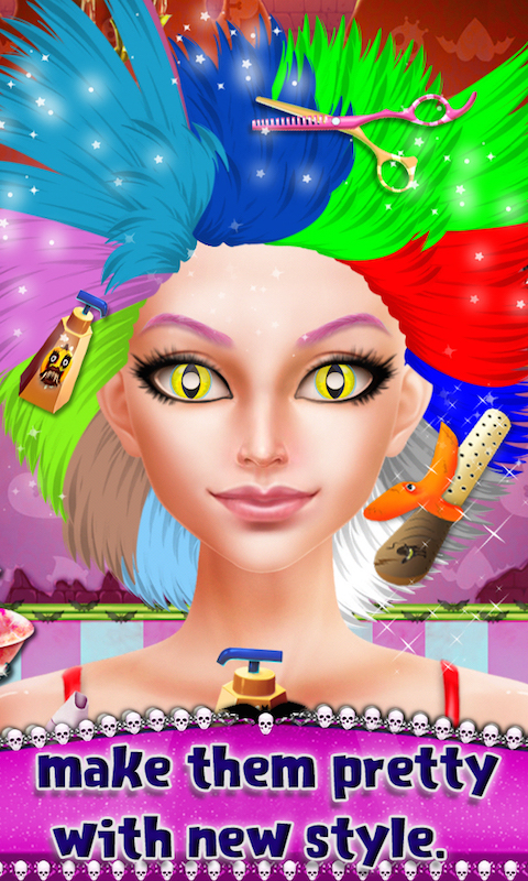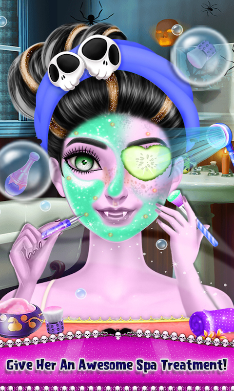 Hello Friends, Are you bored of only do a makeover for human beings? If yes then let's try these things on a monster. With this Happy Halloween Party Makeover game, you can convert your imaginations into reality. First, visit the spa and fix all the skin problems for her before she goes treating. Then go to the hair salon and give her perfect hair style for the party. After that select makeup like different hair style, eye shadow, eye lashes, eye mask, earrings, eye lenses, eyebrow and much more