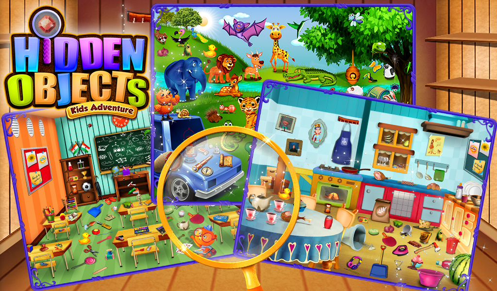 Hidden objects kids adventure is best game for kids to explore their hidden skill. The principle of this game is simple; you have to find a series of hidden objects in a scene! In this game your seek and find skills will be