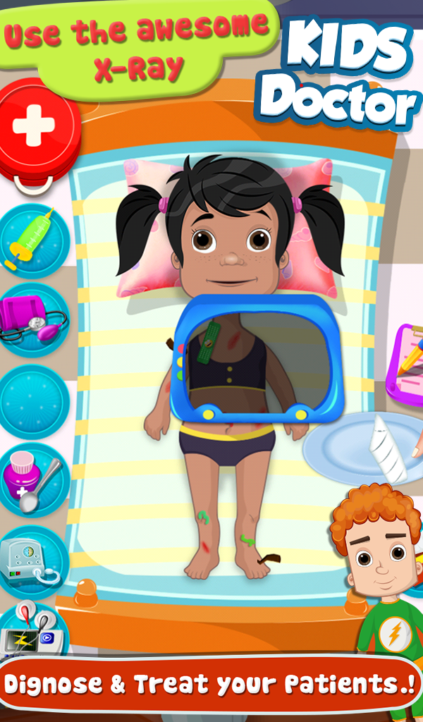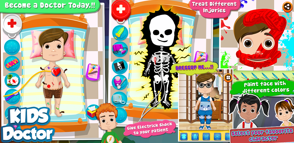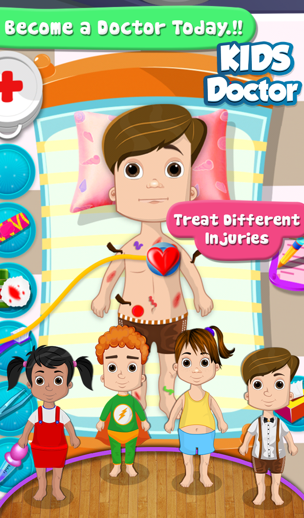 Kids don't like to go to doctor but they always like being a doctor themselves and treat patients. Here in this game children can experience becoming a doctor by treating a wounded child at the hospital. The Kid have to complete many tasks as a doctor like healing the wound, cleaning the mouth etc. This entertaining game will help small children to understand the basic things about being a doctor. Features: 1) The game consists of 5 different levels. 2) For every level there would be 4 di