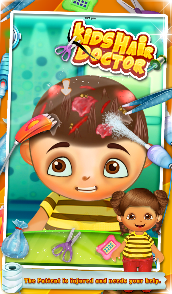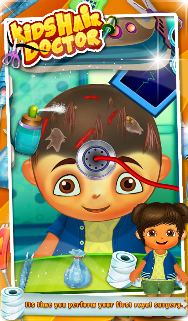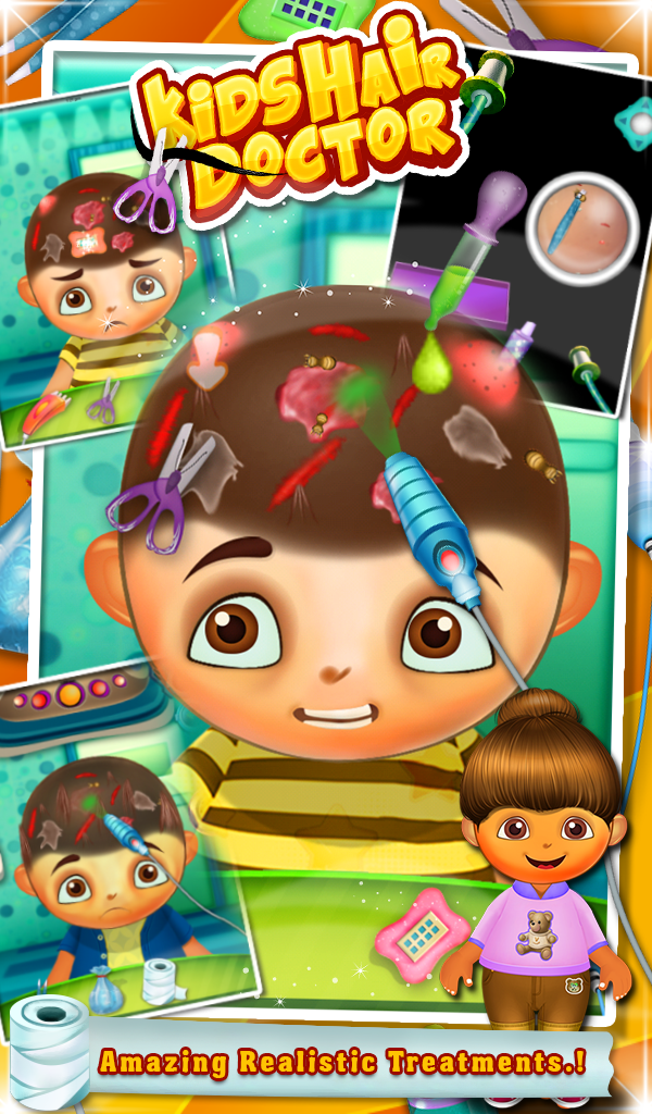 See all those kids are playing and having fun in garden... Ohhh No..!! Some of kids had fallen down and got head injury... let's take them to doctor and rescue them from injury. These cute little kids are injured while playing. So start treatment by choosing from four adorable kids, you can use many different kinds of medical tools to treat the babies. Here you can do all the following things for them, such as use your handy toy hair slenderer and trim hair, use scissor to cut remaining ha