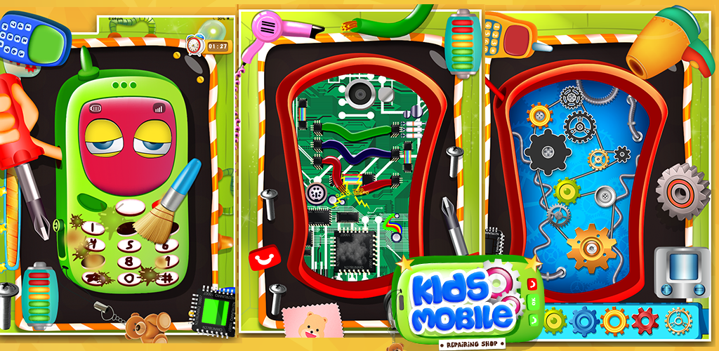 Hey Kids, Do you like to play game and by mistake your mobile got damaged and afraid to tell anyone. Then let's try FREE version of kids game named "Kids Mobile Repairing Shop", its funny and addictive game. Here you will get different levels to repair your damages phone and make it perfect as it was before damaged. How to Play? Kids Mobile Repairing Shop is amazing first mobile repairing kids game available on Google play for free..!! It has 50+ levels to play at first clean up