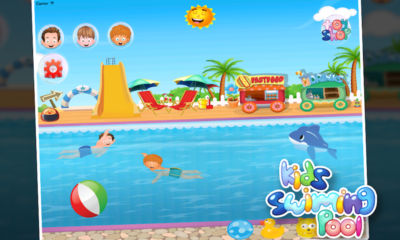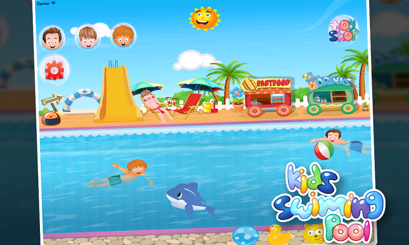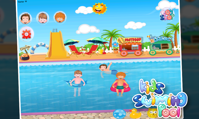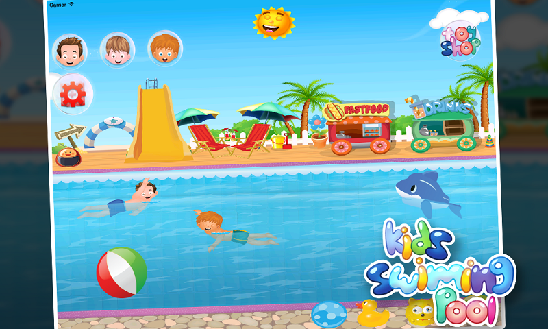 the swimming pool is a kids game that contains the following functionality: - swimming the kids - eating food which is liked by kids - cold drinks - To rest, chairs are available - multiple tubes with which kids enjoy in the pool - multiple boats are available - kids play with toys now enjoy in the swimming pool.